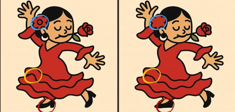 Šį kartą turite atidžiai pažvelgti į šokančios merginos atvaizdus. Išoriškai jie atrodo identiški, tačiau tarp jų yra trys paslėpti skirtumai. Turite tik 43 sekundes!