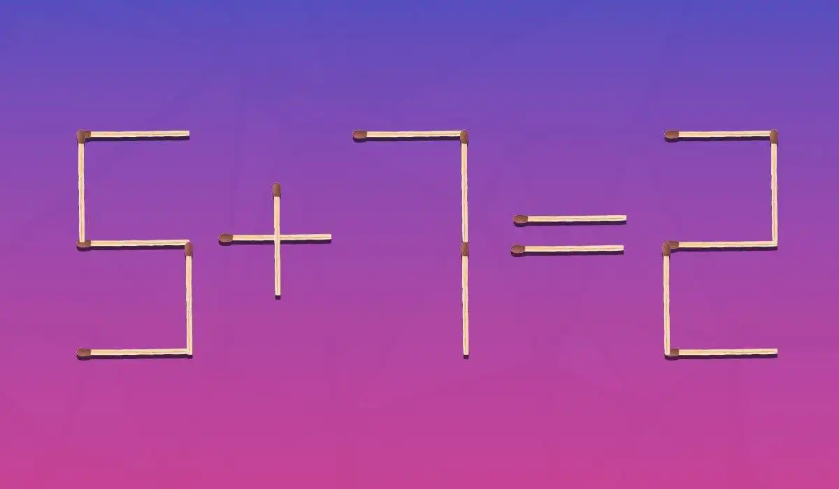 Žemiau pamatysite vaizdą, kuriame lygybė 5+7=2 išdėstyta naudojant degtukus. Akivaizdu, kad čia yra klaida, nes atsakymas turėtų būti 12.