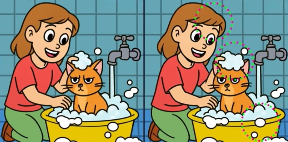 Pasiruošę išbandyti savo dėmesingumą? Pažiūrėkite į du merginos su kate atvaizdus. Iš pirmo žvilgsnio jie atrodo visiškai vienodai, tačiau nuotraukose slypi trys nedideli skirtumai.
