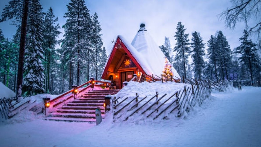 Nuotraukoje pavaizduotas namas, kurį norint pasiekti reikia užlipti dideliais laiptais. Aplink namą spygliuočių miškas, medžių šakos linksta nuo didelio sniego kiekio. Prie namo stovi žibintai, o visas kiemas padengtas storu sniego sluoksniu, kuris beveik visiškai dengia tvorą.