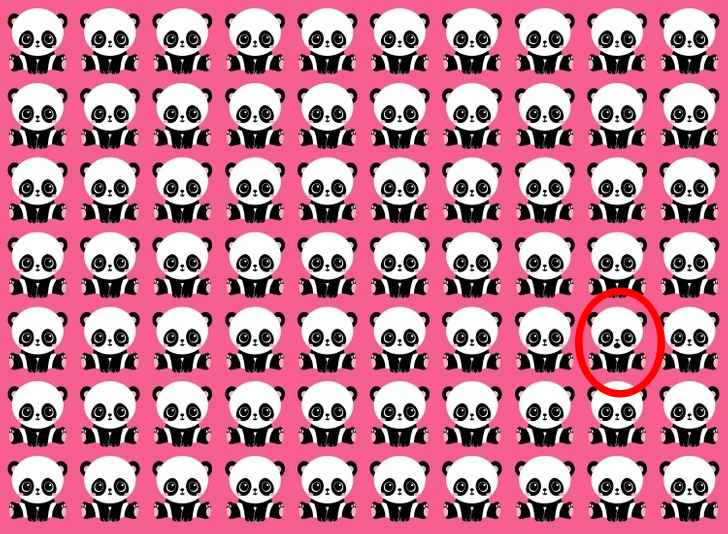 Nepavyko? Pagauk atsakymą – pandą, kuri nepanaši į kitas, apatiniame dešiniajame kampe. Ji turi atvirą burną, o kitų pandų burna uždaryta.