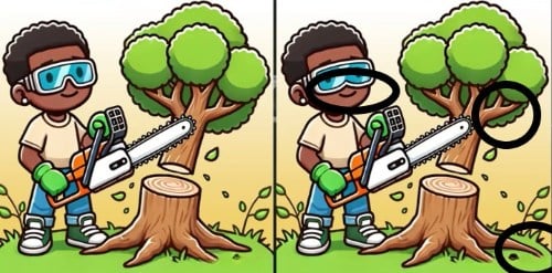 Paveikslėlyje pavaizduotas medkirtys, o jūsų užduotis – vos per 21 sekundę surasti 3 skirtumus. Būkite atsargūs: skirtumai gali pasislėpti bet kur – atspalviuose, formose ar visiškai nepastebimose detalėse.