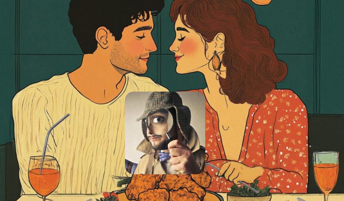 Štai romantiškos vakarienės metu maloniai bendrauja įsimylėję vyras ir moteris. Mergina vilki elegantišką suknelę, o vaikinas – lengvą megztinį. Ant stalo galite pamatyti taures gėrimų ir keletą skanių patiekalų. Ant įstaigos sienų kabo paveikslai, o lubose kabo lemputės.