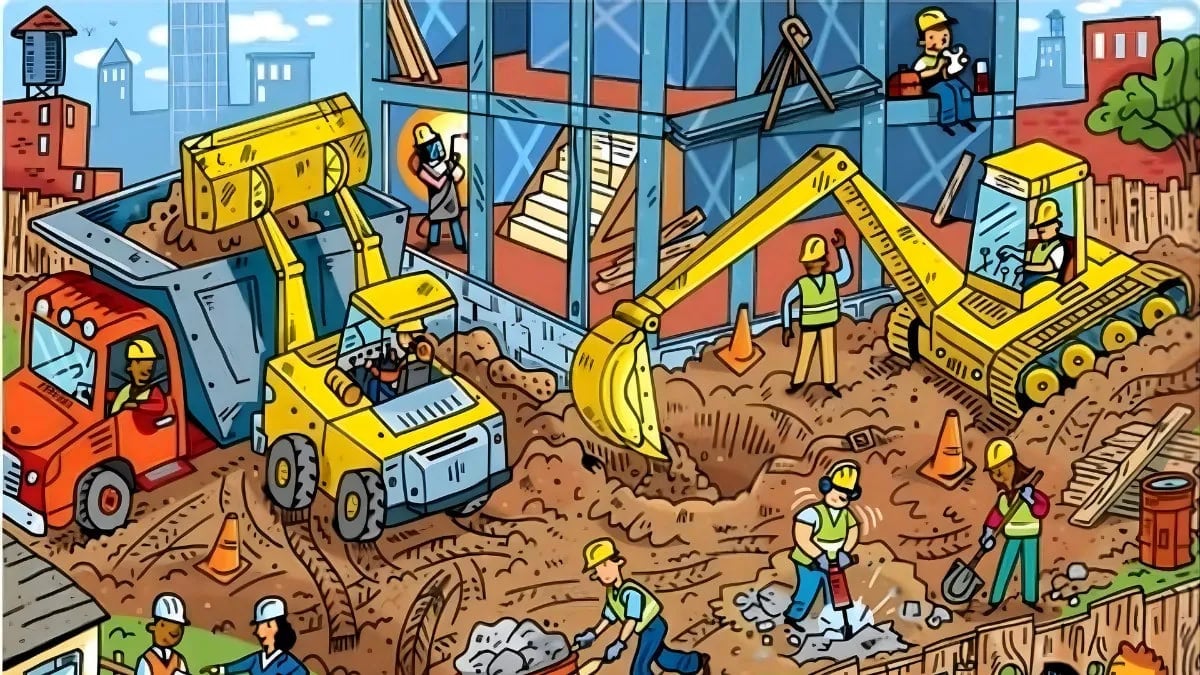 Šioje galvosūkyje bananas yra paslėptas statybvietės viduryje.