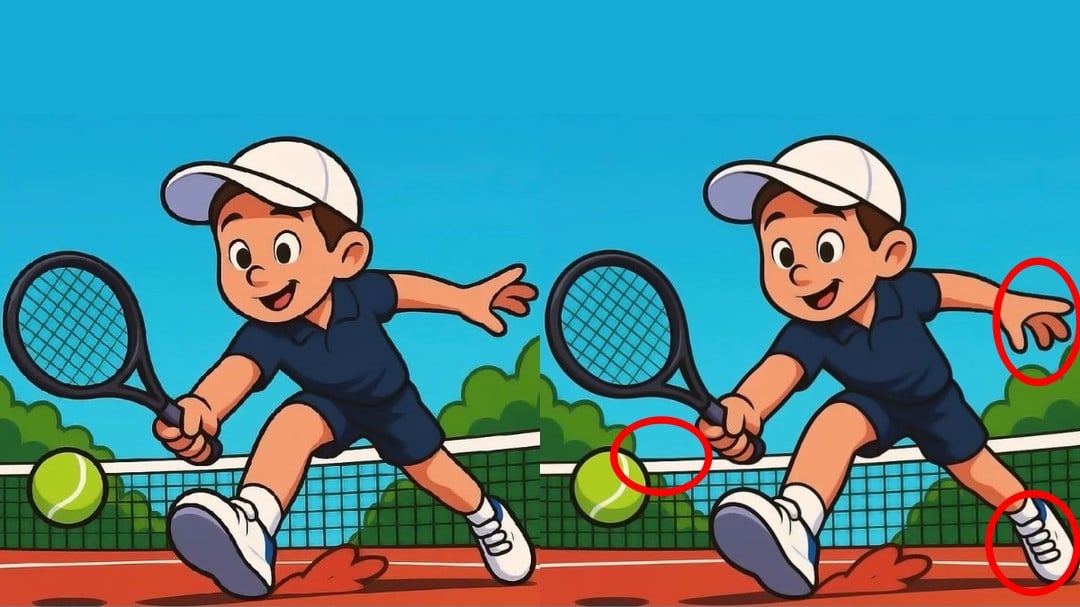 Štai du tenisininko vaizdai. Jūsų užduotis yra rasti tris skirtumus vos per 35 sekundes.
